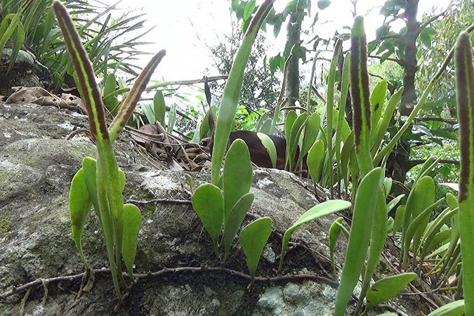 Tongue fern grows on the trunks of living trees, dead trees and rocks at an altitude of 0-1300 m. Generally grows in humid areas and can withstand drought for up to 6 months. The whole plant is used in traditional Chinese medicine.