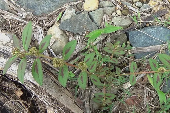 Patikan kebo or asthma plant (Euphorbia hirta) is a species of plant in the Euphorbiaceae, an annual herb, prostrate or erect, growing to 60 cm, stems cylindrical, reddish green, hairy and producing abundant white latex, white or brown taproot.